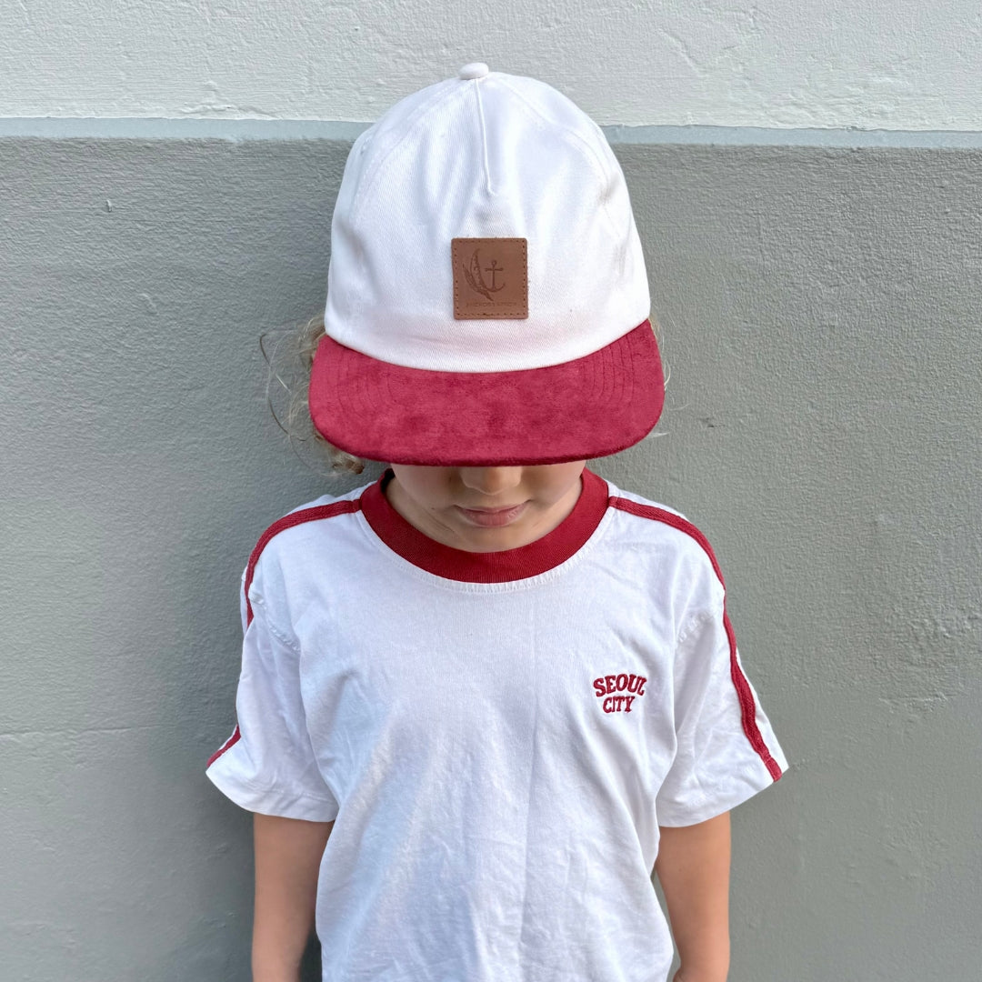 Cruiser Cap | Beige Canvas & Cherry Suede