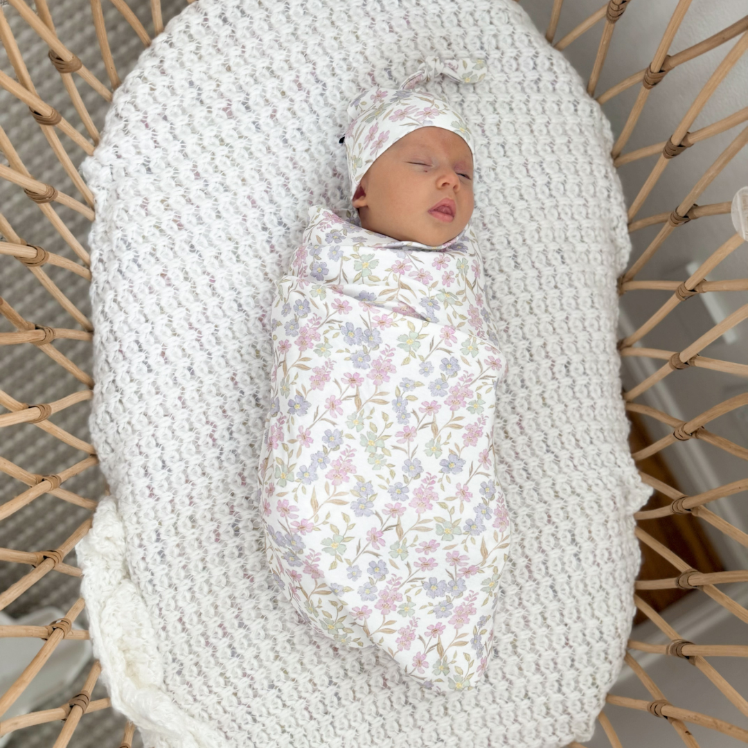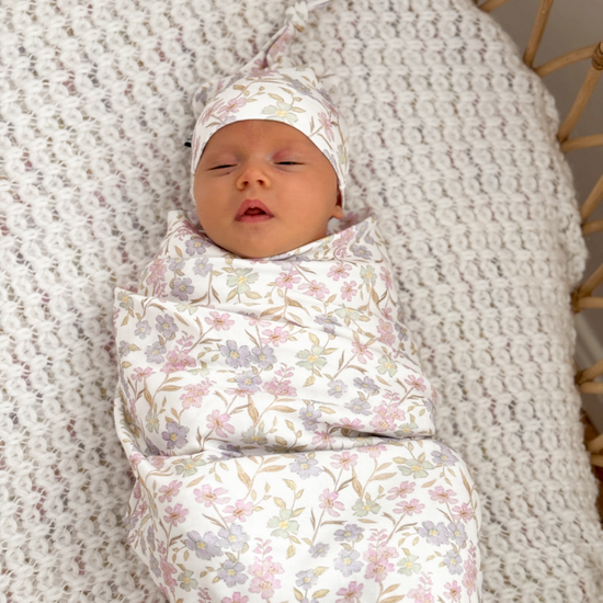 Our gorgeous Daisy Dreams is now available in our Jersey swaddle and matching beanie.
