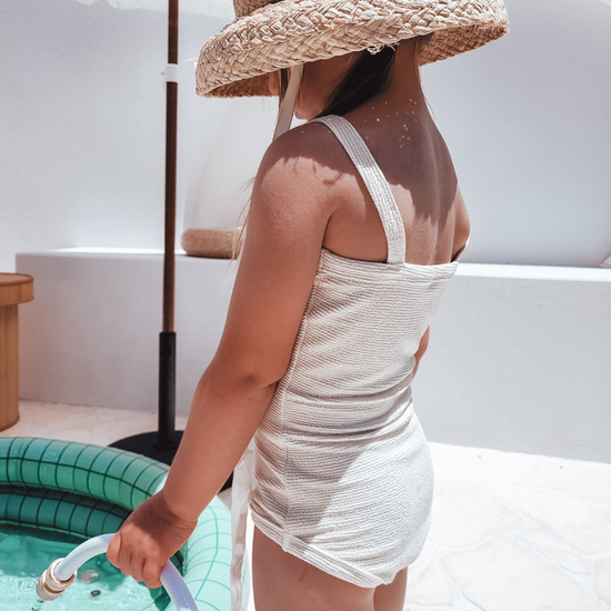 Meet the 'Florence' one piece. This gorgeous one piece has a hand crafted flower makes this piece ultra special. The flower is movable from front to back so you can pick your style.