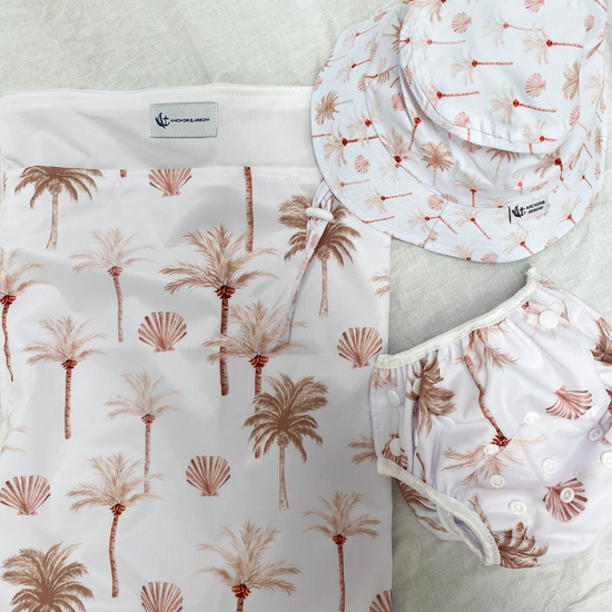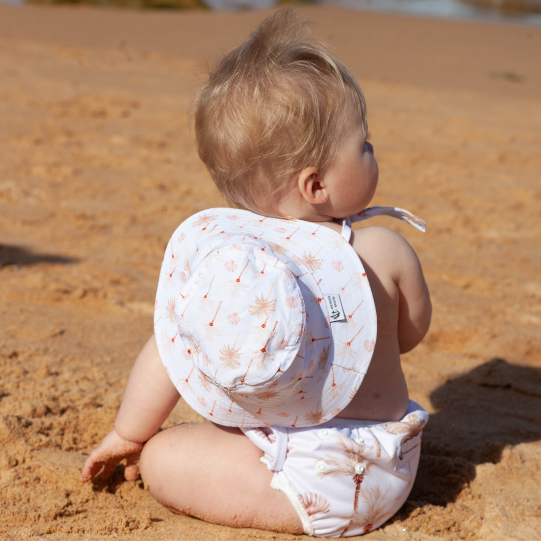 Our gorgeous swim hats can be worn in and out of the water. Made with quick dry material, your little one will be protected from the sun while they are out and about or in the water.